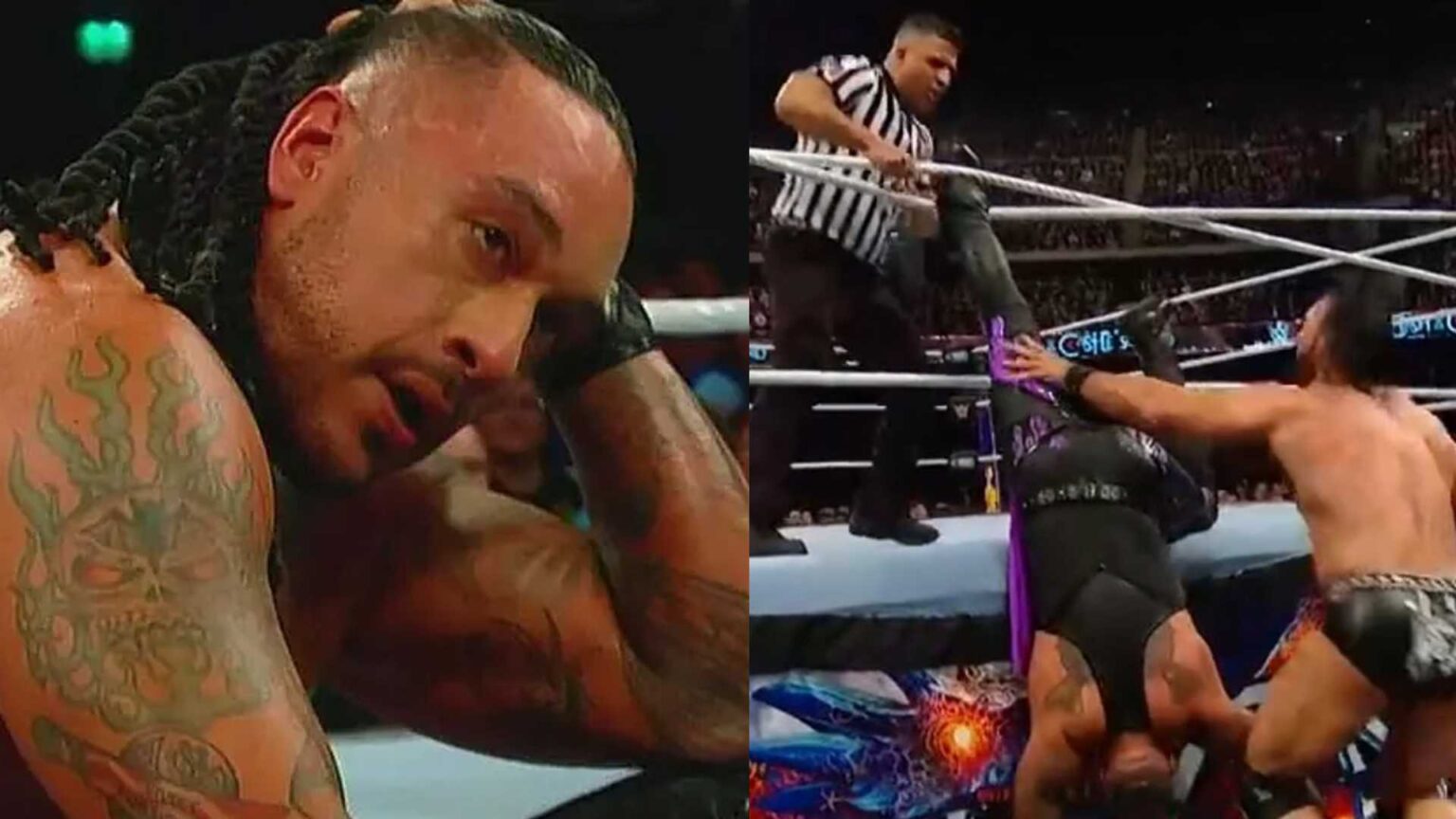 The moment that Damian Priest became trapped in the ropes at #WWEClash