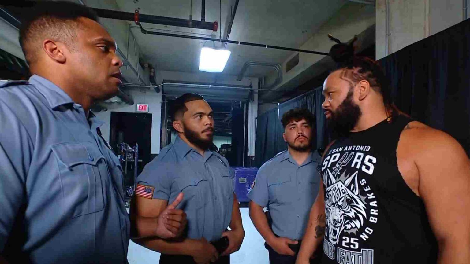 Una vez que comenzó SmackDown, no pasó mucho tiempo antes de que la policía decidiera ir por Jacob Fatu. Le preguntaron a Adam Pearce dónde estaba la estrella, y él los llevó hasta él. Fatu no estaba contento y confrontó a la policía, diciendo que no iría con ellos. Sin embargo, Pearce lo convenció de cooperar, lo que llevó a su arresto por parte de la policía.