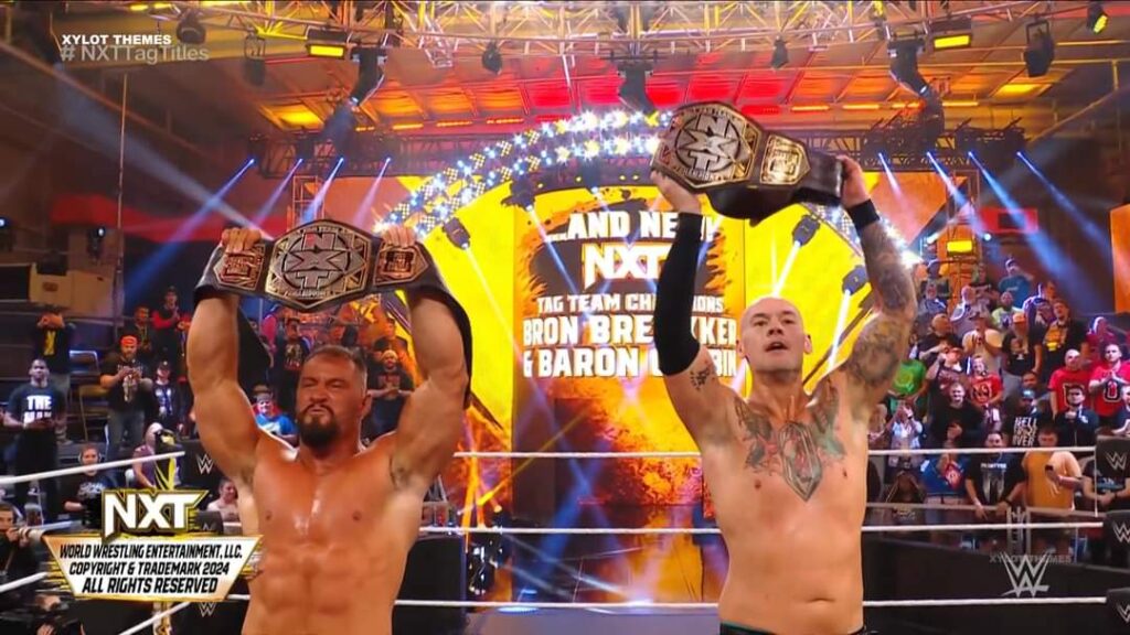 Wolf Dogs (Bron Breakker y Baron Corbin) derrotan a The Family (Tony D’Angelo y Channing ‘Stacks’ Lorenzo) y son los nuevos Campeones de Parejas.