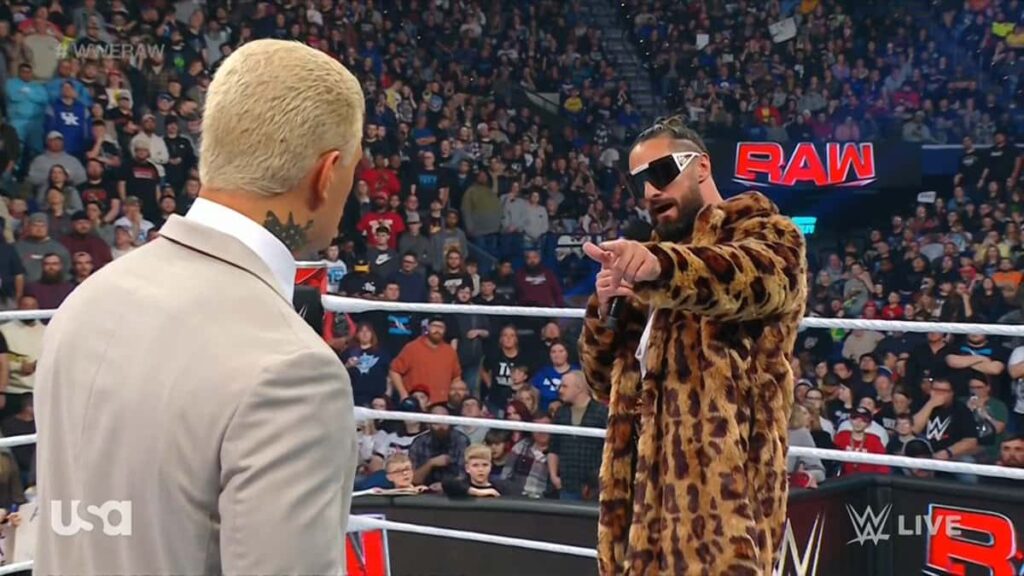 Ahora, es su última oportunidad real de arrebatarle el oro a Roman y devolvérselo a la gente. Rollins cree que es hombre adecuado para hacerlo. “¿Cuál es tu plan, Cody?”, pregunta Seth. Éste le recuerda que el año pasado tuvo a The Bloodline en su contra. Sin embargo, ha logrado ganar por segundo año Royal Rumble para volver a tener una oportunidad, solo que esta vez tendrá un desafío mucho mayor por delante, ya que tendrá que enfrentarse a The Rock. “No tienes que libras esta batalla solo”, le indica Rollins. Seth le recuerda su declaración frente a Roman, al que aseguró que le arrebatará todo. Rollins asegura estar cansado de que tipos como Roman se salgan siempre con la suya. Seth asegura sentirse responsable de Reigns. Hace 12 años, lo trajo consigo al roster principal. Él le enseñó todo. Sin embargo, nunca imaginó el monstruo en el que se convertiría. Seth asegura a Cody que conoce a la única persona que podría ser su escudo (The Shield) en esta batalla. Alguien que fue un arquitecto (The Architect), pero ahora es un visionario (The Visionary). “¡Seth Freakin Rollins!”, corea el público. El campeón suelta el micrófono y abandona el ring, dejando tras él a un sonriente Rhodes.