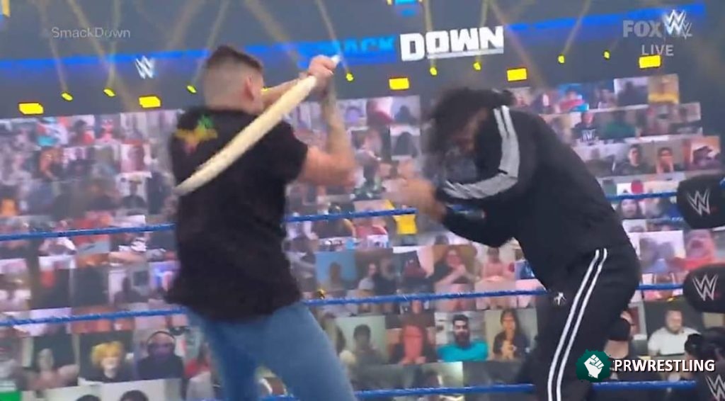 WHAT HAS @WWERomanReigns DONE?!?! 😱😱😱#SmackDown @reymysterio @DomMysterio35 @HeymanHustle pic.twitter.com/cfWKzuTEjn
