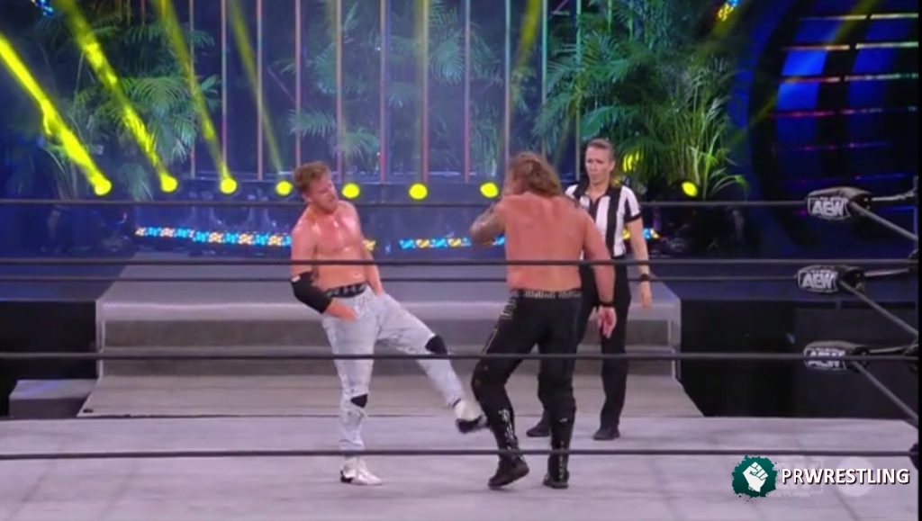 Hangman Page y Kenny Omega derrotaron a Private Party (con Matt Hardy) para retener los títulos en pareja en buena lucha tras el combo del rodillazo y el Lariat.