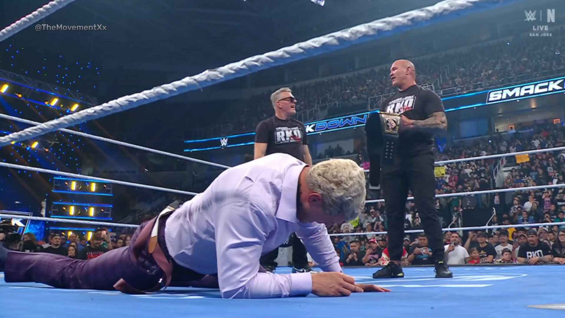 Randy Orton apareció en el TitanTron, arrastró a Jelly Roll al escenario. Orton y McAfee atacaron a Rhodes. Orton golpeó a Rhodes con el título WWE.