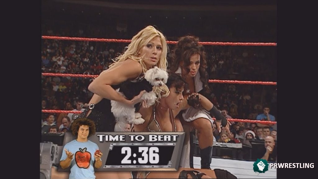 Durante la lucha, el perro de Torrie Wilson corrió hacia el ring, Victoria golpeó la rodilla de Carlito, pero aún así todo terminó con Carlito ganands. Después de la lucha, Carlito le escupió su manzana a sus oponentes, como usualmente hace.